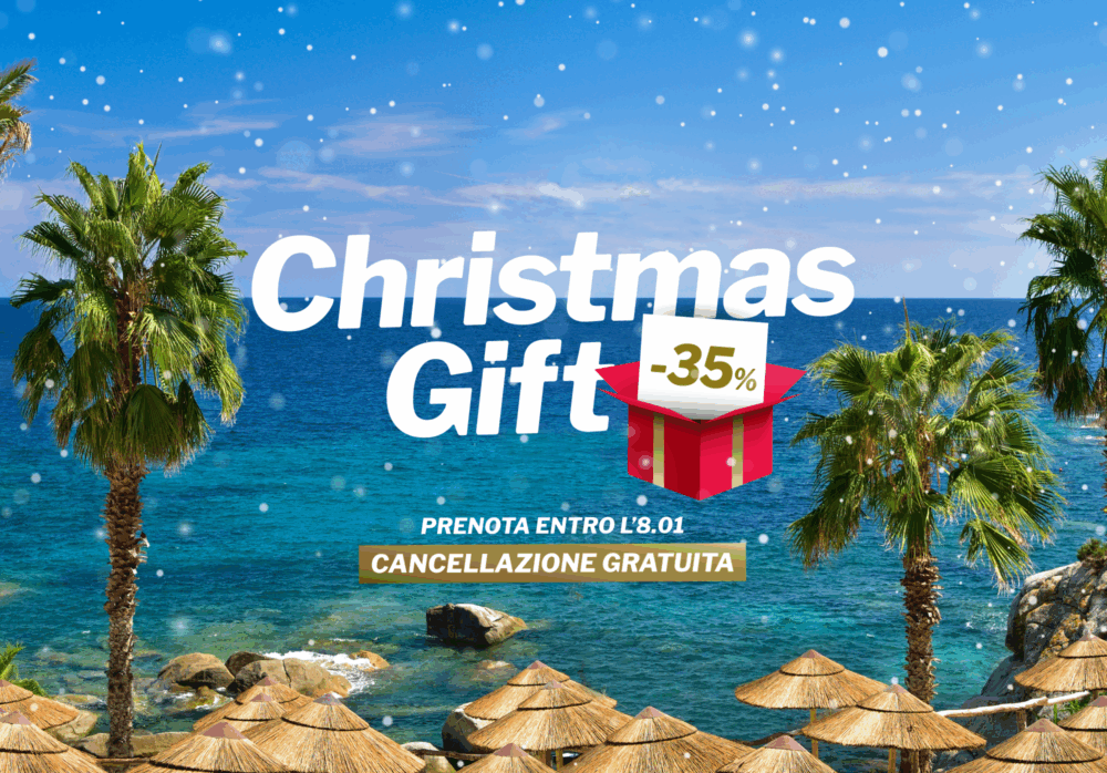 Renderemo uniche le tue festività natalizie con la promozione Christmas Gift, non lasciarti sfuggire questa straordinaria offerta! Scegli di trascorrere con noi una perfetta vacanza in Sardegna all’insegna del relax e del divertimento, prenota entro l’08.01.2026 e avrai diritto al 35% di sconto su un soggiorno in uno dei nostri hotel per l’estate 2026. E se non potrai partire, la cancellazione è gratuita!