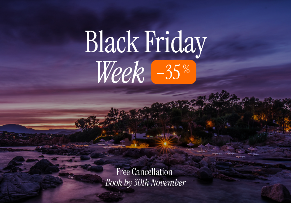 Black Friday frenzy at Arbatax Park Resort! Don’t miss this special offer. Choose to spend a perfect fun and relaxing vacation in Sardinia, book by 02.12.2025 to get a 35% discount on a stay in one of our Hotels in summer 2026! And if you can’t travel, cancellation is free of charge!